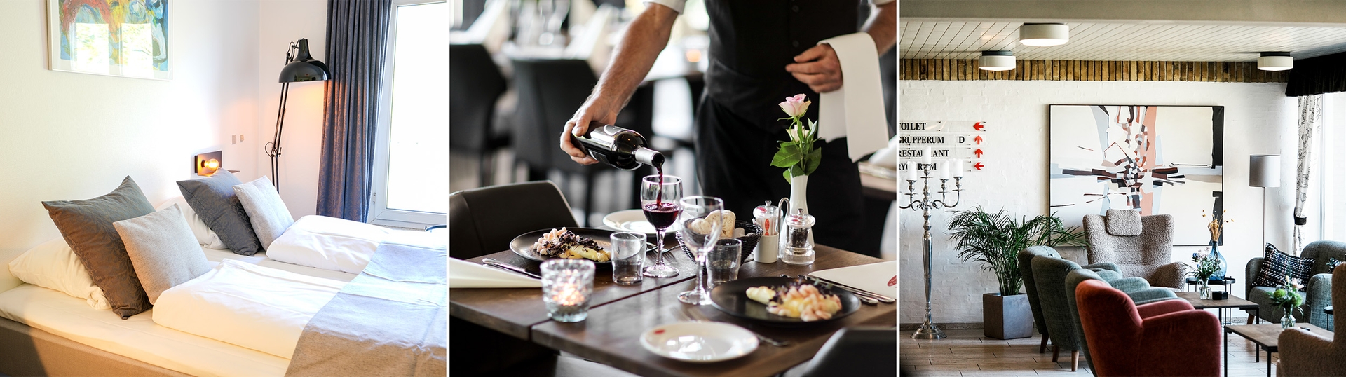 Restauranten er lukket søndage og helligdage, efter morgenmad og der serveres ikke aftensmad denne dag. Opholder I jer på hotellet en søndag eller en helligdag, og der er pension i jeres ophold, stilles en flaske vin og en snackkurv med lidt salt og sødt, som erstatning for middagen.